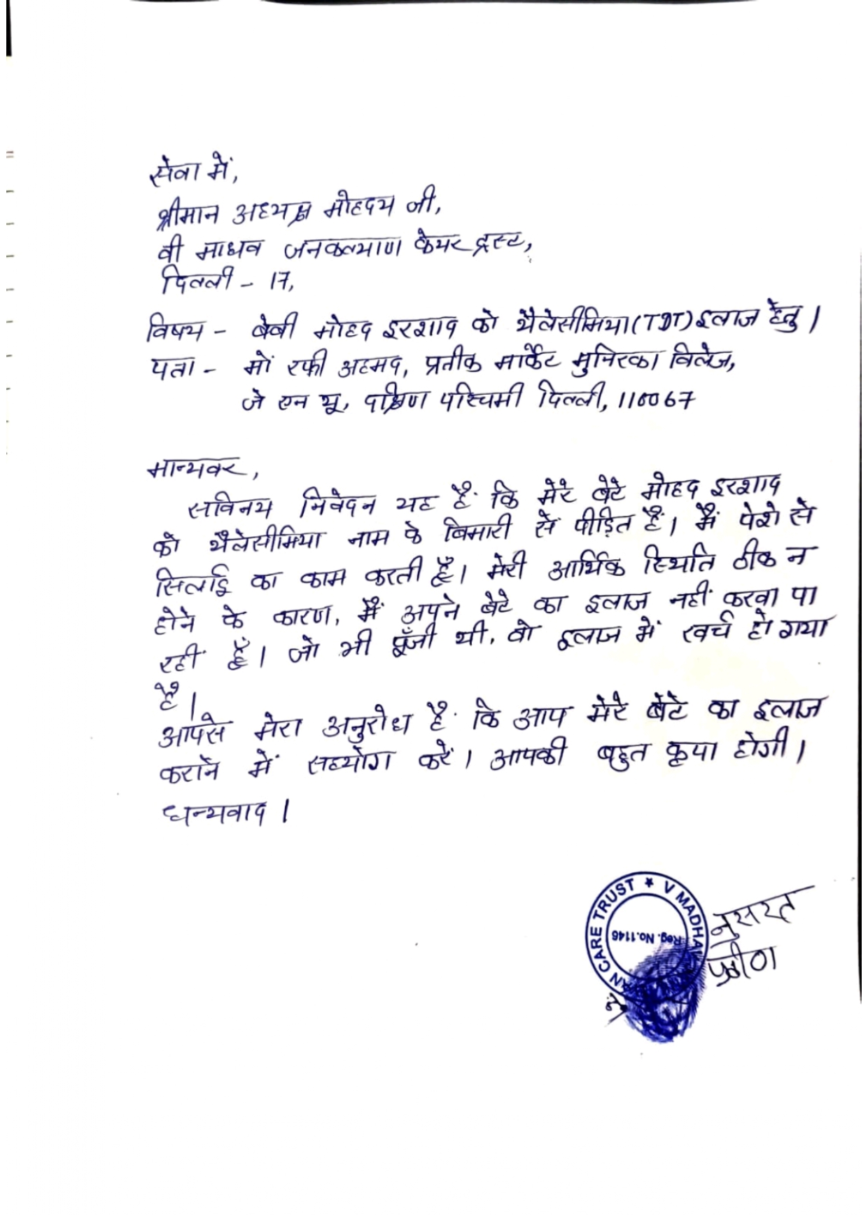 We really appreciate your initiative to support a noble cause for Supporting the life of MOHD IRSHAD. who is struggling with his life at All India Institute of Medical Sciences(AIIMS), New Delhi, having a life threatening disease (Thalassemia).